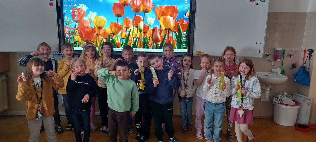 Začátkem dubna 1. třídy navštívila dentální hygienistka, která dětem poutavou formou přiblížila, jak správně pečovat o své zuby. Povídali jsme si o tom, jak zuby vypadají před a po jídle, co jim škodí, a naopak co jim prospívá.