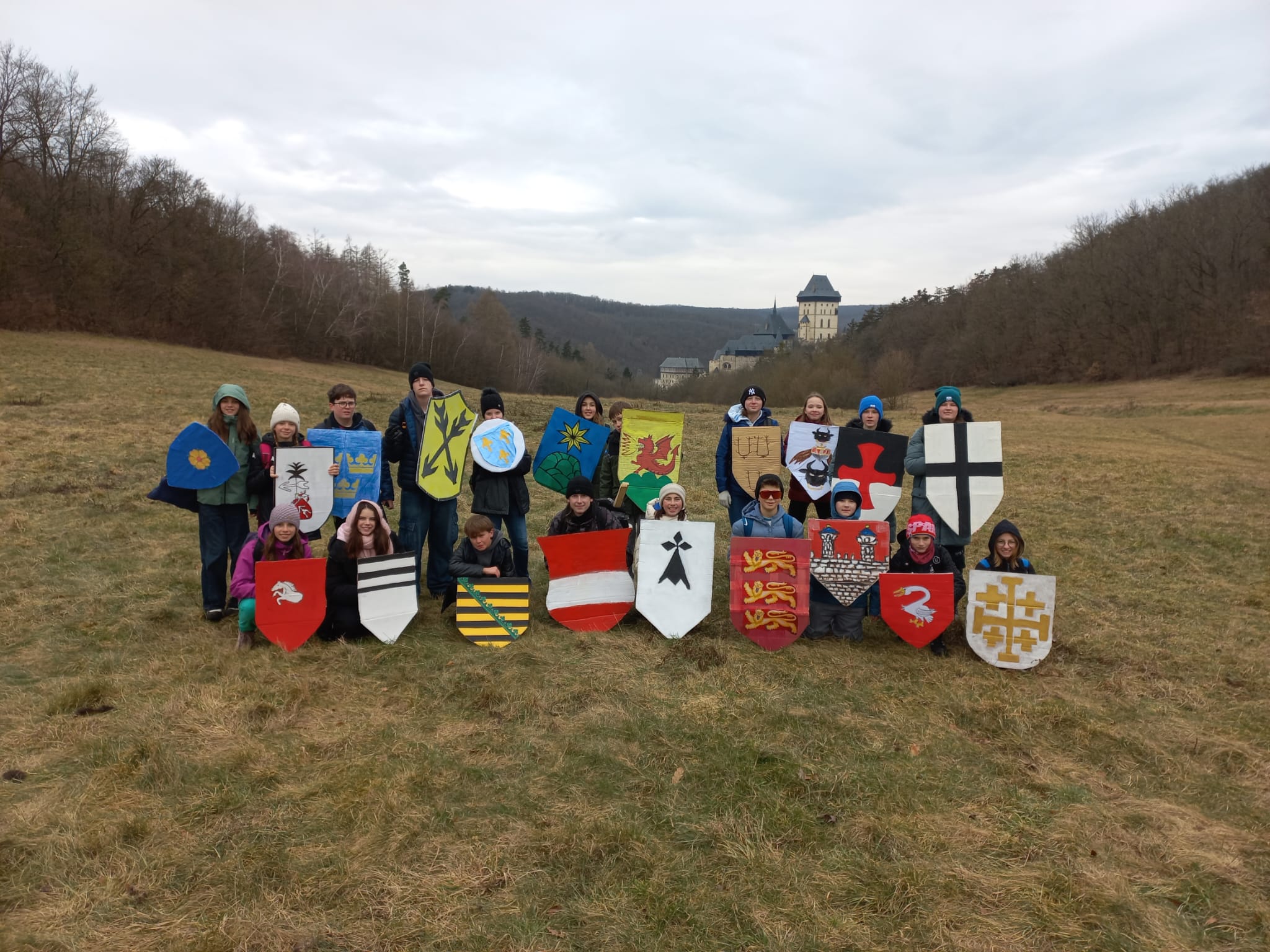 Dne 23. ledna léta Páně 2025 vyrazily oddíly měšťanů, rytířů, pánů a zbrojnošů z třídy 7.A oblehnout od Prahy nedaleko vzdálený státní hrad Karlštejn. Při zastaveních konvoje pochodujícího ze zastávky železného oře v Zadní Třebani si bojovníci vzájemně představili erby, pod kterými do bitvy táhli, a cvičili se v boji ve štítových formacích.