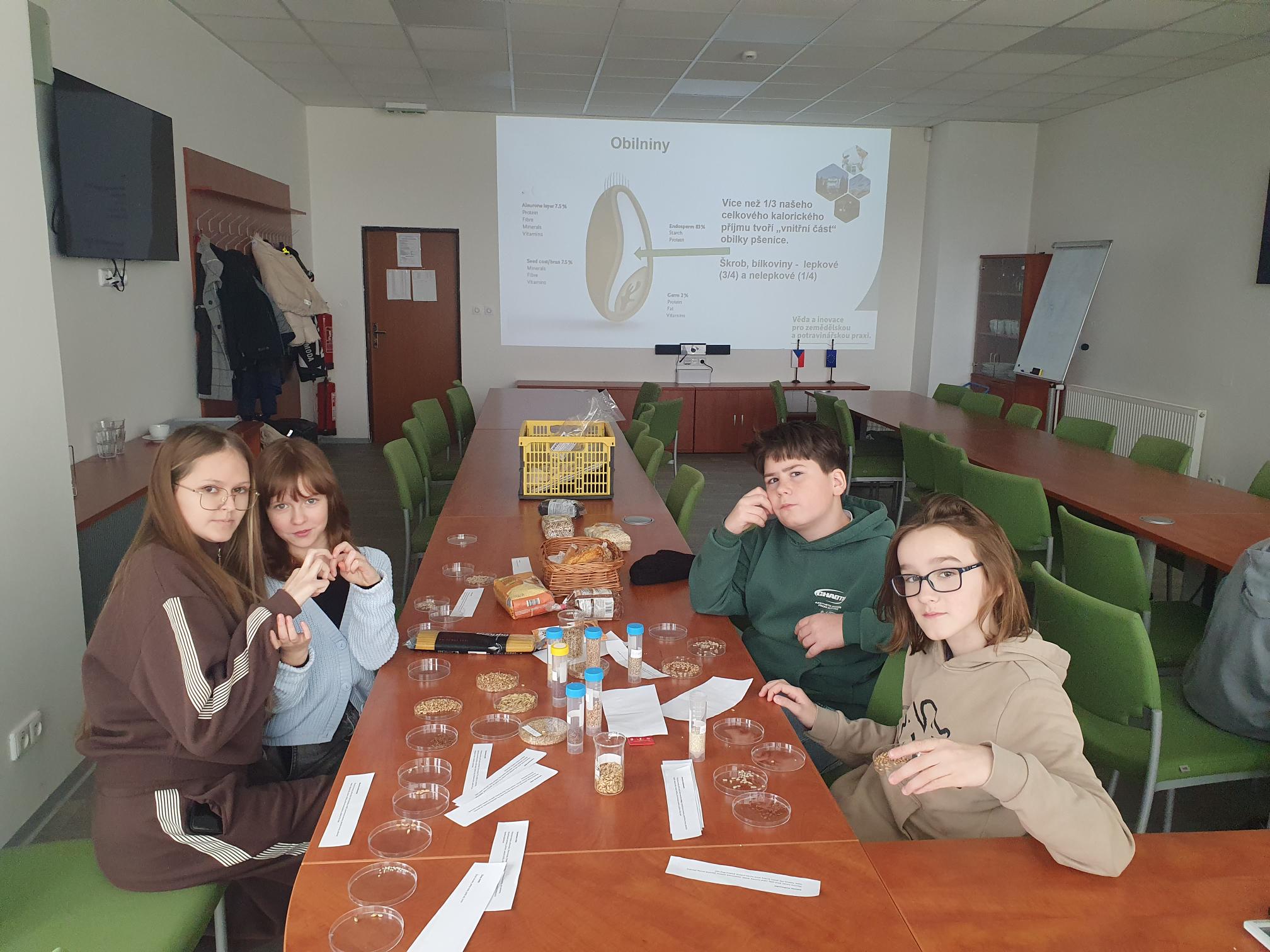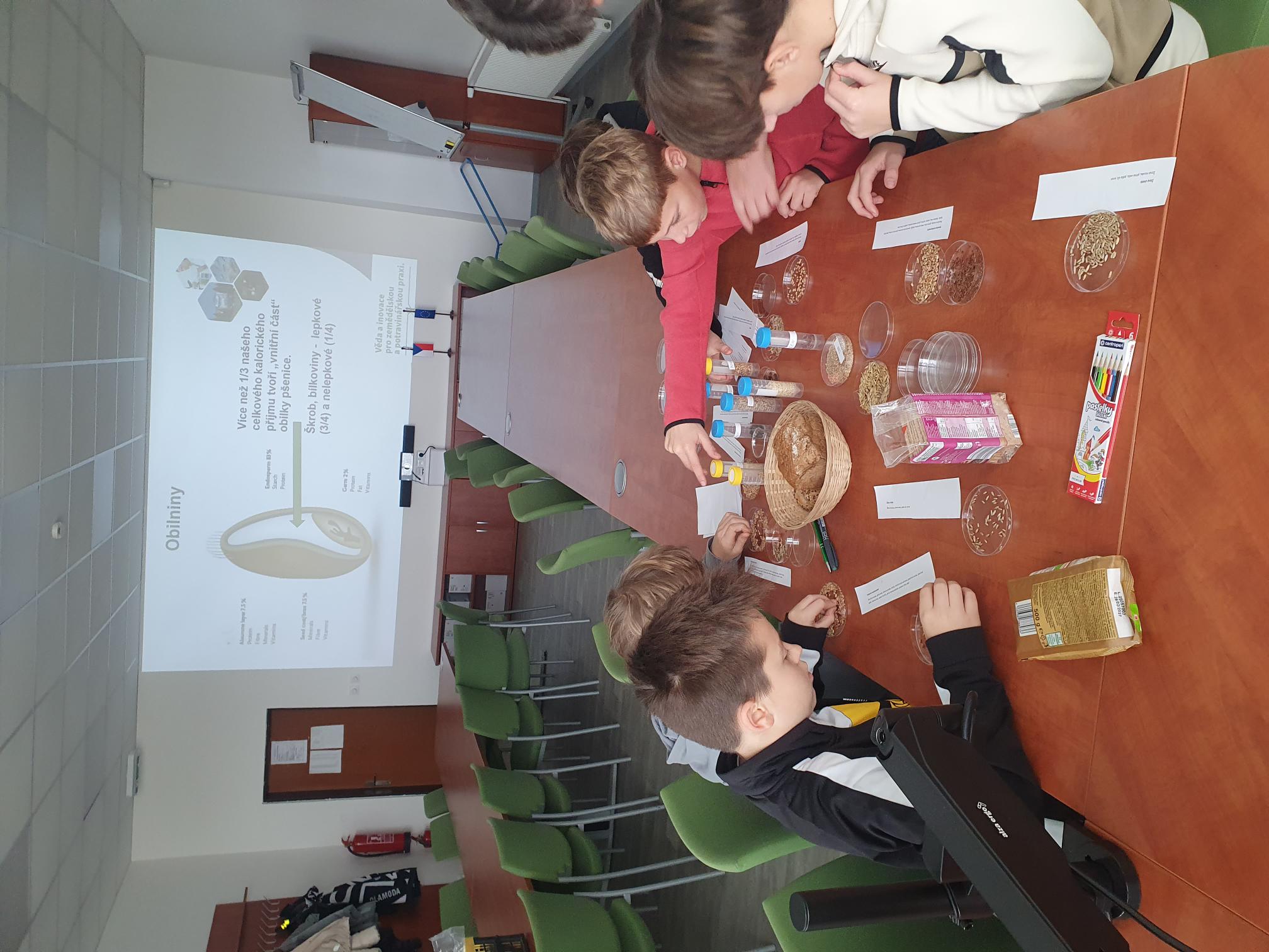 Třída 6. A se v pátek 21. 11. zúčastnila nevšední exkurze v Národním centru zemědělského a potravinářského výzkumu. Žáci a žákyně byli rozděleni do 3 skupin a podle předem připraveného harmonogramu se na různých stanovištích seznamovali se zajímavostmi z oblasti "Bohatství zemědělských plodin" z cyklu "Jak rostou potraviny". V laboratoři si žáci ve dvojicích vyzkoušeli kvalitu sklizeného obilí – dostali laboratorní postup a dle něj vykonávali jednotlivé kroky a do laboratorního protokolu zapisovali své výsledky. Na konci zjistili, zda byl jejich vzorek obilí vhodný pro potravinářské, či jen krmné účely. Při aktivitě nazvané Talíř si všichni ověřili, co znamená pečivo žitné, celozrnné či multicereální, a také byli všichni poučeni o tom, jak by se správný spotřebitel měl orientovat ve složení výrobků, než si je zakoupí. V nabitém programu byla také komentovaná přednáška s živou ukázkou, všichni se mohli seznámit se škůdci skladových zásob. Některé exponáty byly k vidění i pod lupou. Komu se poštěstilo, mohl si prohlédnout místnost poblíž genobanky, kde byly vzorky různých semen, která jsou nejen za naši republiku dodávána k uskladnění do úložiště semen z celého světa v Norsku.