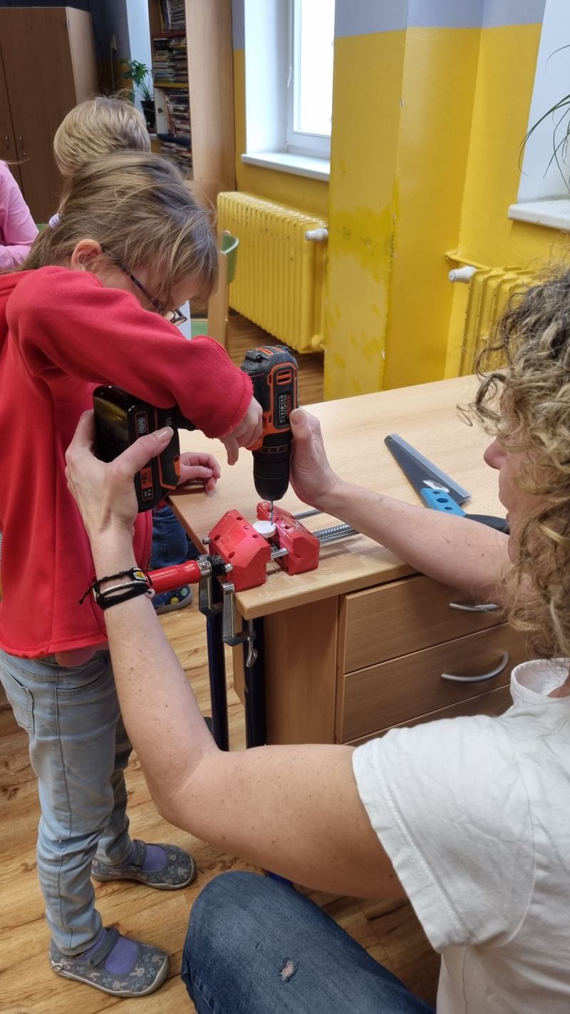 Ve čtvrtek, 20.11., měli žáci školní družiny možnost vyzkoušet si svou zručnost a kreativitu pod vedením lektorek z kroužku Kutil junior z.s. Kutilský workshop byl otevřený všem dětem díky podpoře městské části Praha 13. Děti si vyzkoušely řezání a broušení dřeva, vrtání a závěrečné zdobení. Vznikla tak dřevěná ozdobička na vánoční stromeček. Kroužek Kutil junior patří mezi stálé kroužky na naší škole a je mezi dětmi velmi oblíbený. I účast na samotném workshopu byla hojná. Děkujeme lektorkám za trpělivé vedení a pomocnou ruku všem našim malým šikovným kutilům.