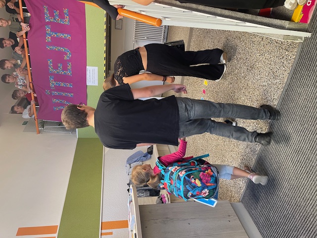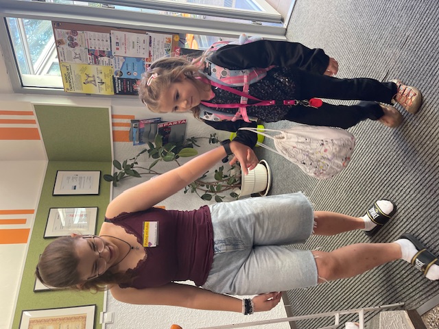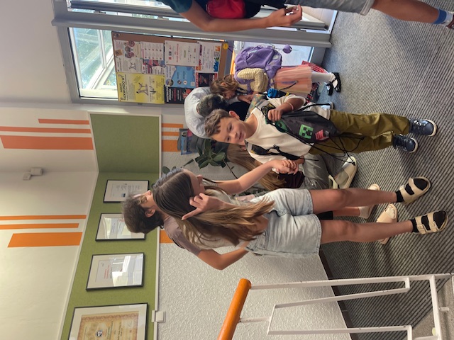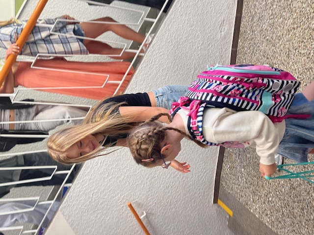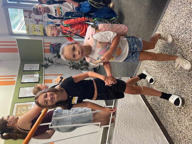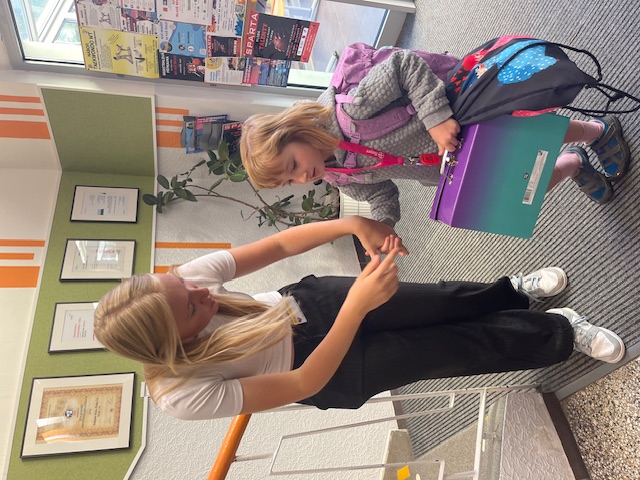 Každé ráno před první vyučovací hodinou čekají žáci 8. a 9. ročníku u vchodu na své mladší spolužáky z 1. tříd. Společně s nimi pak zamíří do šatny, kde pomáhají s otevřením skříněk, převlékáním i uzamčením skříňky. Poté prvňáčky doprovodí až do jejich třídy.