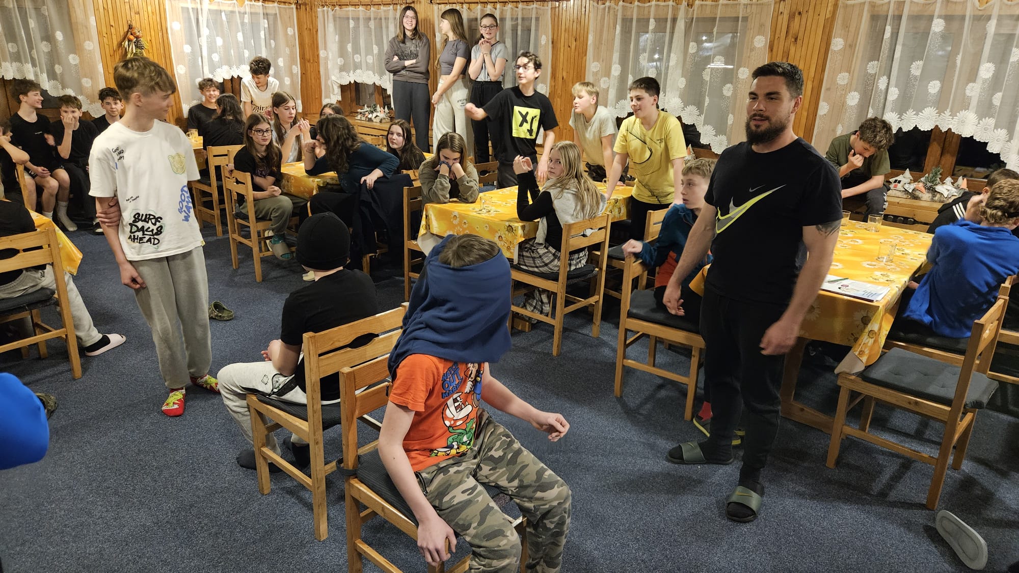 Po výborné večeři se žáci seznámili s režimem a programem kurzu a také s pravidly FIS pro bezpečný pohyb na lyžařských tratích. Večer pak strávili společenskými hrami, které přispěly k lepšímu poznání a posílení kolektivu.