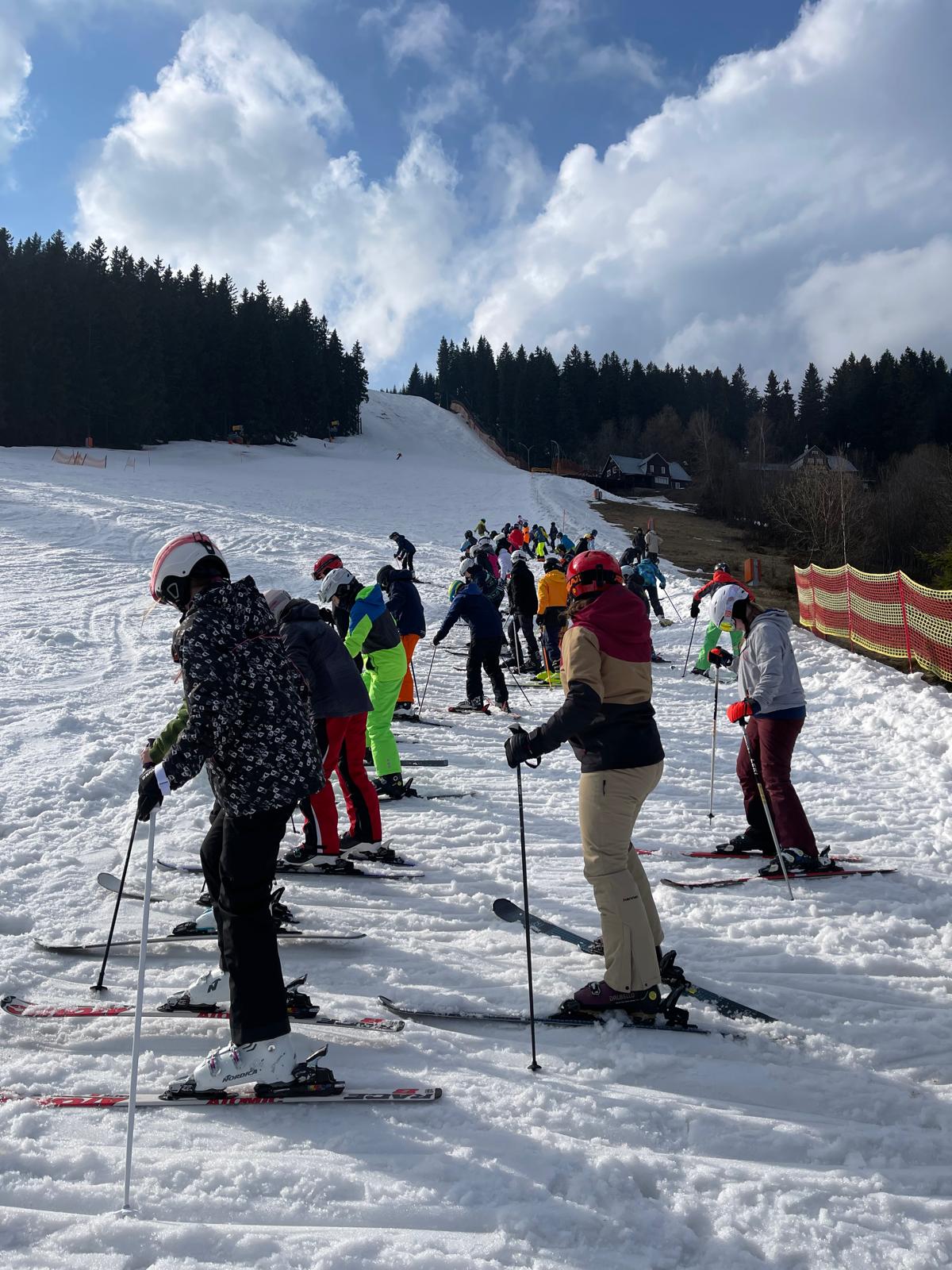 Po příjezdu a ubytování na horské chalupě Lucký na Hnědém vrchu následoval odpolední program, během kterého proběhlo rozřazení žáků do pěti družstev podle jejich lyžařských dovedností. Každý tak bude mít možnost zdokonalovat se tempem, které mu nejlépe vyhovuje.