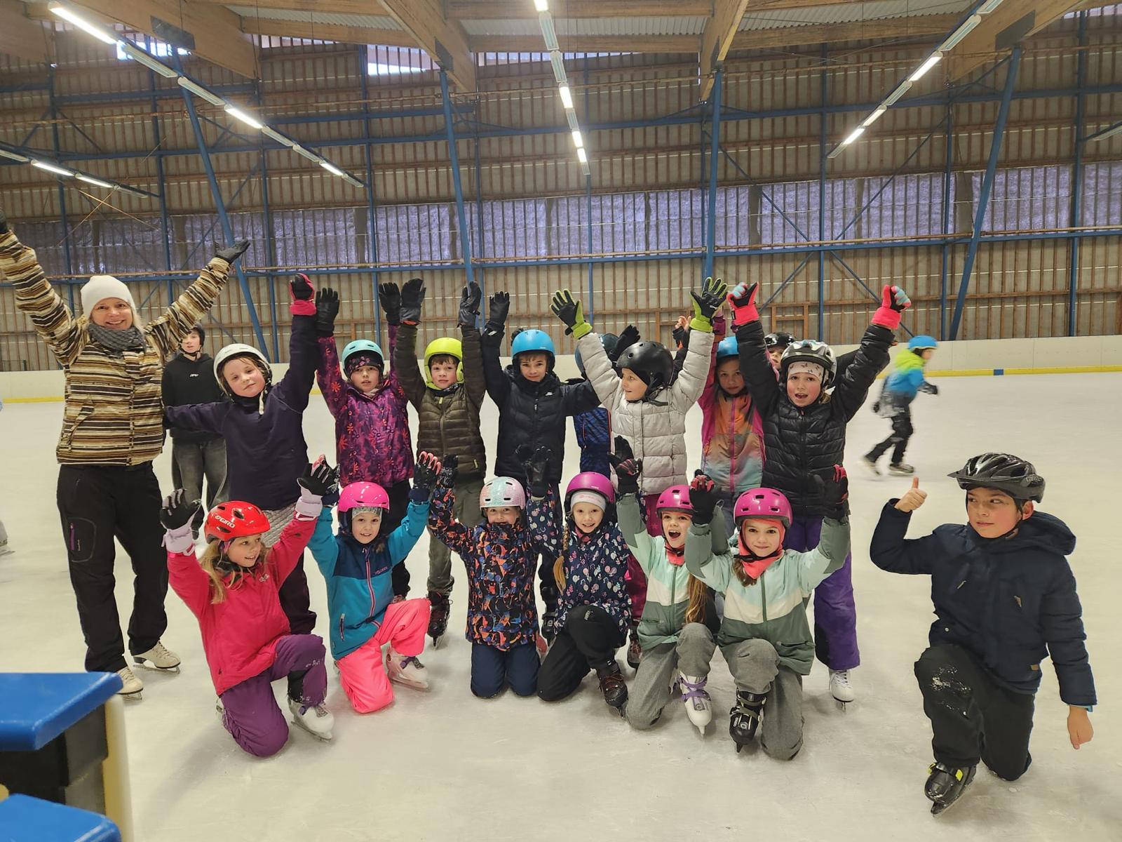 V minulých měsících žáci 3.B, 4.C, 5.A a 5.B vyměnili tělocvičnu školy za kluziště a hodiny tělesné výchovy trávili na zimním stadionu na Lužinách.